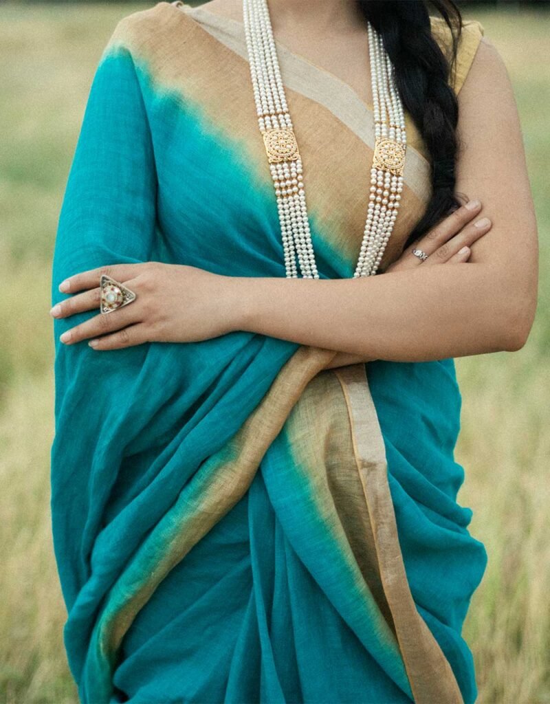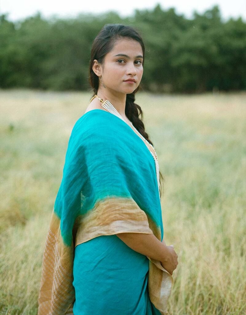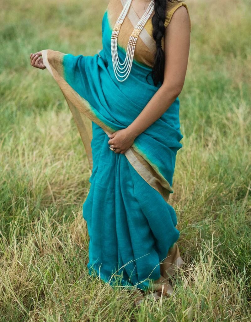 Be the first to review “Green Ombre Pure Linen Saree”